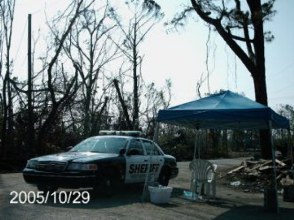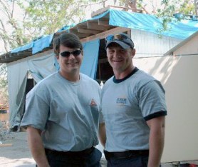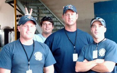 At the Second St. Firestation at Left are Firemen Josh Luke and Bennett Hale hailing from Madison, MS making this their third return trip to the Pass. At Right are Pass Firemen Heath Mitchell, Daryll Bradley, and Jason Hair. Behind is Josh with the Rabbit ears.